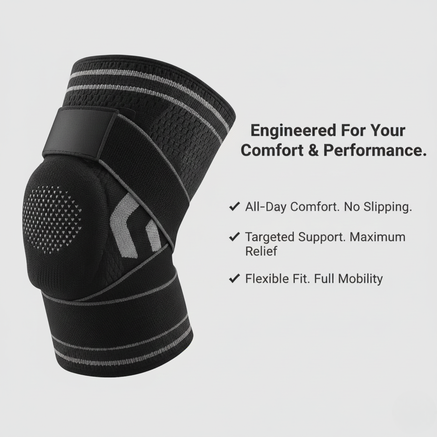 This is more than a compression sleeve. Our medical-grade design features robust side stabilizers that prevent the painful lateral (side-to-side) motion common in sprains and ligament issues. It's the structure your joint needs to feel instantly supported and protected during recovery.